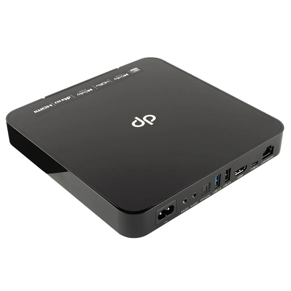 Аппаратное декодирование 8K видео, кинематографический уровень. Увеличенная оперативная память обеспечивает более высокую эффективность передачи данных и меньшую задержку при чтении и записи. Ускоренная обработка и вычисления. Благодаря своим компактным размерам одинаково хорошо помещается за телевизором, на AV-стойке или даже на полке 19″шкафа. Устройство оснащено богатым набором портов: HDMI 2.1, USB Type-C, USB 3.0, USB 2.0, оптический SPDIF, стереовыход 3,5 мм и RS232. Это обеспечивает полную совместимость с различным AV-оборудованием, как в гостиной, так и в домашнем кинотеатре.