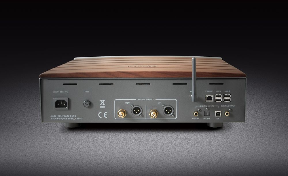 Универсальный цифровой источник Consonance Reference CDS8, объединяющий в одном корпусе проигрыватель компакт-дисков, ЦАП и сетевой стример. Новинка оснащена щелевым транспортом оптических дисков. Кроме коаксиального и оптического цифровых входов здесь есть порт USB-B для подключения к компьютеру. Для интеграции стримера в компьютерную сеть предусмотрен порт Gigabit Ethernet. Есть здесь и четыре порта USB 2.0 для подключения внешних накопителей, а также адаптер Bluetooth для прямой трансляции музыки с мобильных гаджетов.