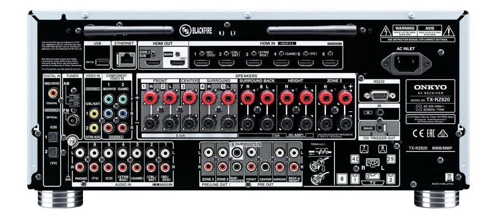 - 7 HDMI входов (6 сзади, 1 фронтальный) и 2 выхода (Main Out, Zone 2 Out)