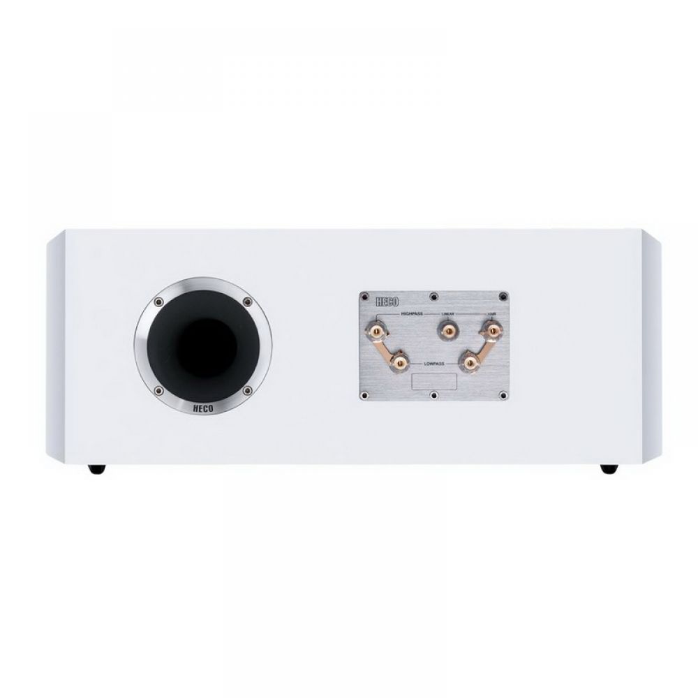 Центральная система HECO Celan Revolution Center 4 имеет фазоинверторное оформление с тыловым воздушным портом. Конфигурация двухполосная, с разделом на частоте 3000 Гц. Среди выделяющихся параметров модели отметим невероятно широкий частотный диапазон воспроизведения (паспортные данные 30 — 52000 Гц). Столь высокие показатели в первую очередь обеспечивают первоклассные головки фирменной конструкции. Верхний спектр озвучивает легчайший тканевый твитер с дюймовым куполом, заключённым в небольшой рупор. Ниже работают 170-миллиметровые низкочастотники из специально подготовленной целлюлозы. Особое внимание конструкторы уделили демпфированию корпуса, на качество которого недвусмысленно намекает солидная масса громкоговорителя.