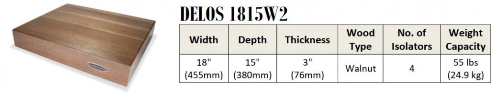 Виброизолирующая платформа, массив грецкого ореха, 455x380x76 мм, 4 изолирующих ножки, макс.вес: 24,9 кг