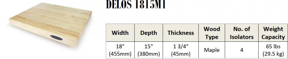Виброизолирующая платформа, массив клена, 455x380x45 мм, 4 изолирующих ножки, макс.вес: 29,5 кг