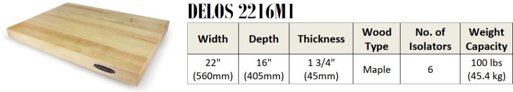 Виброизолирующая платформа, массив клена, 560x405x45 мм, 6 изолирующих ножек, макс.вес: 45,4 кг