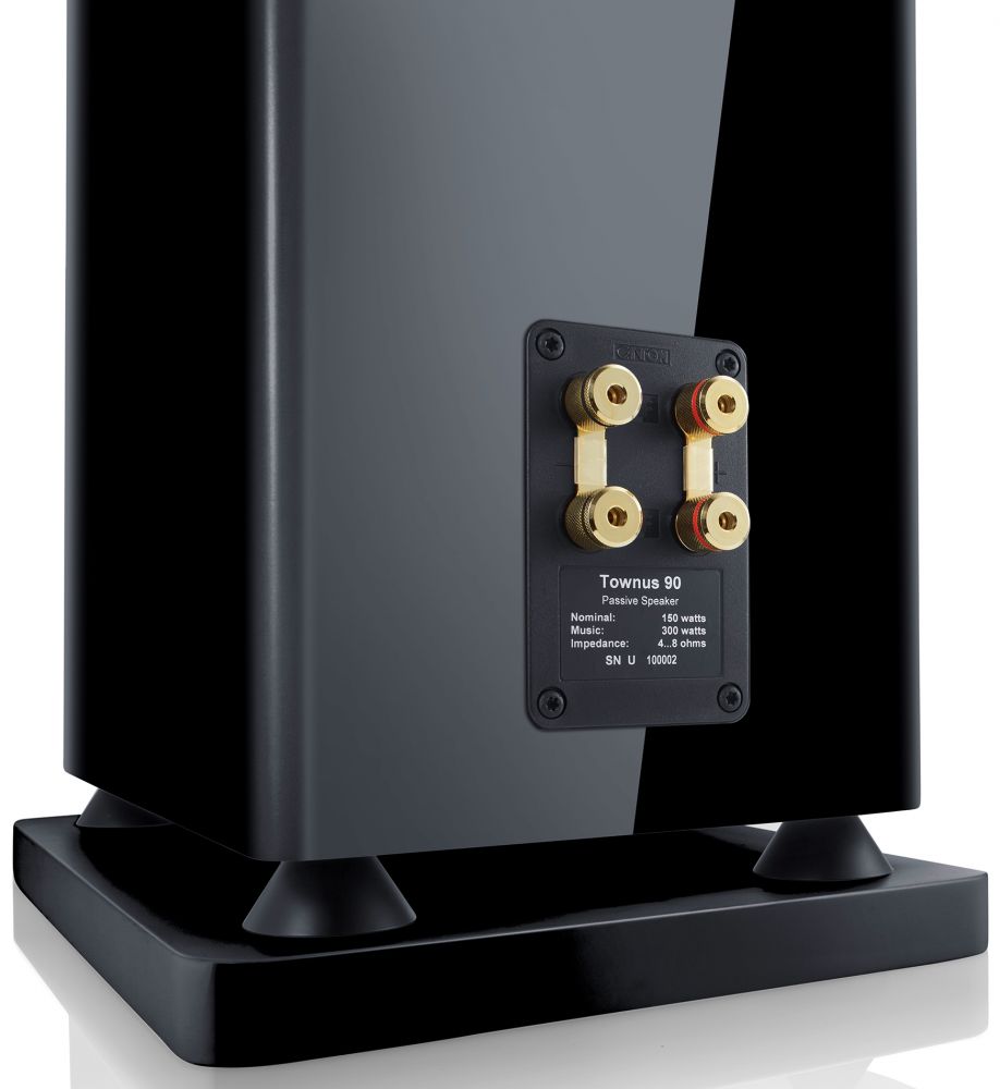 Canton Townus 90 – флагманская напольная трёхполосная акустическая система. Гармоничные пропорции, закругленные края корпуса и безвинтовая интеграция динамиков в тонкую перегородку делают Townus 90 жемчужиной любого жилого помещения. Закругленные края корпуса не только придают Townus 90 элегантный вид, но и улучшают рассеивание звука динамиками. Поверхности с шелковисто-матовым или глянцевым лаком, а также отделка натуральным шпоном из ценных пород дерева подчеркивают первоклассное качество динамиков Townus.