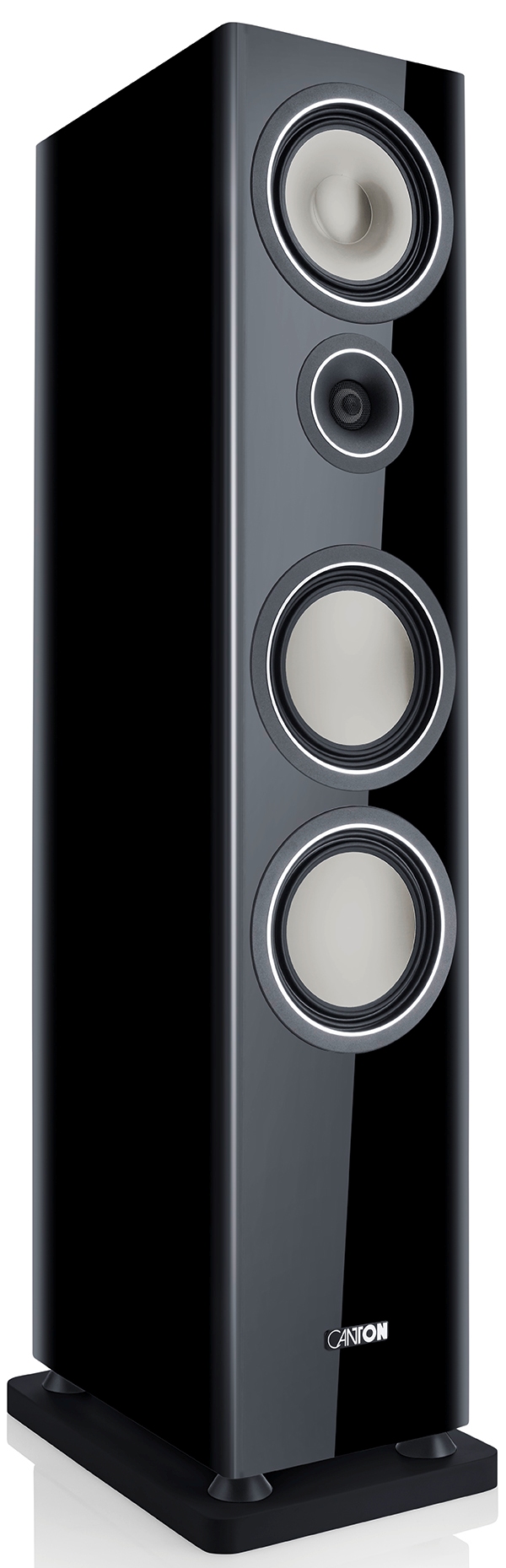 Другими визуальными особенностями Canton Townus 90 являются высококачественные алюминиевые кольца корпуса громкоговорителя, которые изготавливаются с использованием процесса бесшовной алмазной резки, и тканевые панели со скругленными углами, которые плотно прилегают к корпусу благодаря магнитным крепления. И последнее, но не менее важное: деревянная основа с четырьмя металлическими ножками служит прочной опорой. Скрытый от взора слушателя большой порт фазоинвертора в основании корпуса расширяет частотную характеристику. Нисходящее расположение порта фазоинвертора акустически улучшает пространство – точный, глубокий бас без гудения. Прочные корпуса трехполосных напольных громкоговорителей Townus 90 усилены изнутри и оснащены высококачественной внутренней разводкой. Демпфирующий материал внутри корпусов и выбранные компоненты кроссовера наилучшего качества оптимизируют звучание динамиков, которые весят около 24 кг. Четыре динамика в тонких громкоговорителях Townus 90 выполнены по последнему слову техники. Три динамика (один СЧ и два НЧ) диаметром 174 мм с титановыми диафрагмами обеспечивают динамичный бас и детализированные средние частоты. Благодаря басовым динамикам с жесткими двойными диффузорами с низким уровнем искажений и технологии Wave Beading, Townus 90 играет точно и спокойно даже при высоких уровнях звука. Корпус с фазоинвертором, направленным вниз, воспроизводит мощные и точные басы без неконтролируемого отклонения диффузоров низкочастотных динамиков на низких тонах. Проверенный на практике 25-миллиметровый купольный твитер из алюмооксидной керамики предлагает детальный и точный звук. Точно рассчитанный волновод для идеального звукового излучения оптимизирует воспроизведение частот до 40 000 Гц.