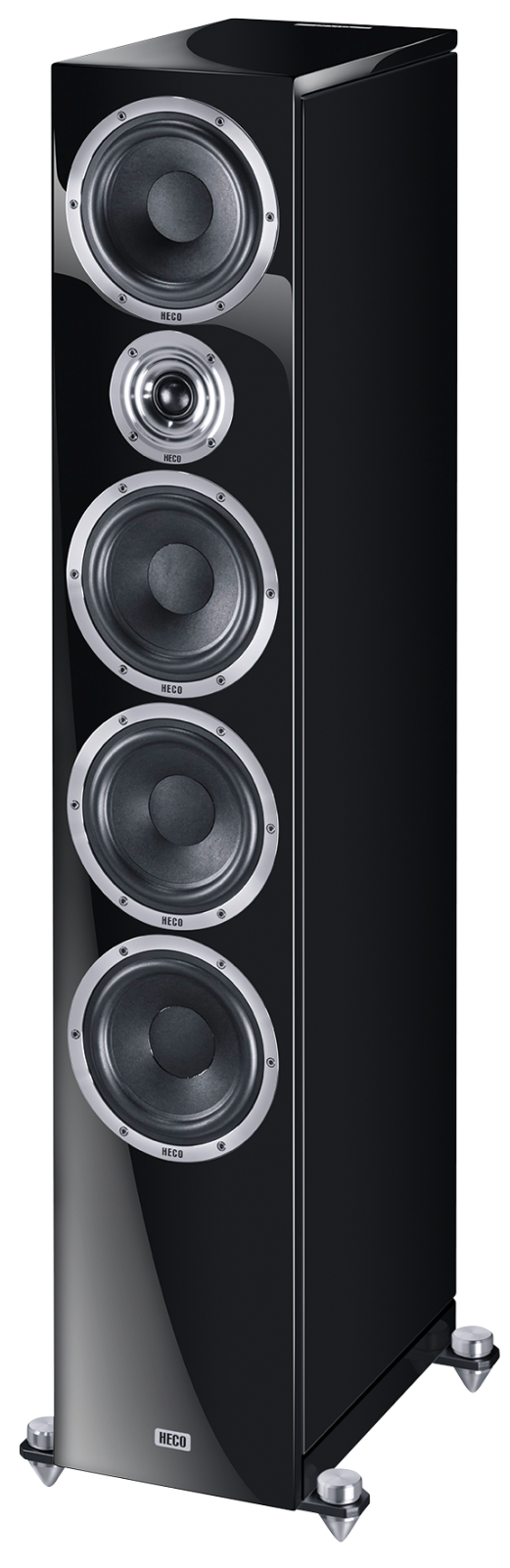 Неподвластный времени тонкий кабинет Heco In Vita 9 высотой 1150 мм стоит на устойчивых перекладинах основания из алюминия и может быть точно и надежно установлен с помощью регулируемых по высоте конических шипов из цельного алюминия. Для чувствительных полов предусмотрена развязывающая резиновая версия. Впечатляющее качество изготовления корпуса с сочетанием глянцевой краски спереди и сверху, а также матовых боковых панелей также проявляется в весе 27,7 кг каждая. Конструктивное усилие также отражено в кроссовере. Он оптимизирован по амплитуде и фазе и предлагает переключаемое усиление высоких частот на 2 дБ. Соединительная клемма, позолоченная и герметизированная, обеспечивает возможность двухканального усиления и двухпроводного подключения, т.е. управление высокими и низкими/средними частотами с помощью различных усилителей и/или кабелей.