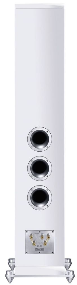Неподвластный времени тонкий кабинет Heco In Vita 9 высотой 1150 мм стоит на устойчивых перекладинах основания из алюминия и может быть точно и надежно установлен с помощью регулируемых по высоте конических шипов из цельного алюминия. Для чувствительных полов предусмотрена развязывающая резиновая версия. Впечатляющее качество изготовления корпуса с сочетанием глянцевой краски спереди и сверху, а также матовых боковых панелей также проявляется в весе 27,7 кг каждая. Конструктивное усилие также отражено в кроссовере. Он оптимизирован по амплитуде и фазе и предлагает переключаемое усиление высоких частот на 2 дБ. Соединительная клемма, позолоченная и герметизированная, обеспечивает возможность двухканального усиления и двухпроводного подключения, т.е. управление высокими и низкими/средними частотами с помощью различных усилителей и/или кабелей.