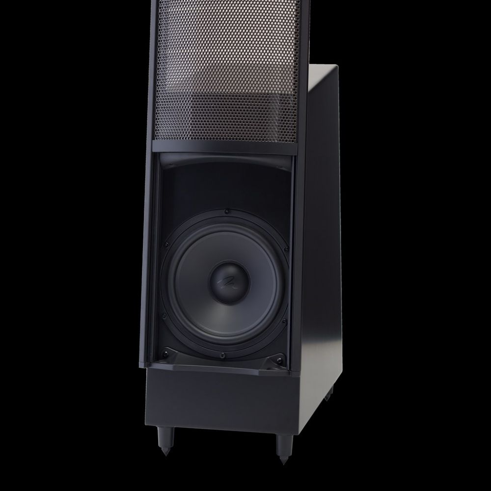 • Низкочастотный преобразователь: Два 8-дюймовых (20,3 см) высочайших экскурсионных бумажных диффузора высокой жесткости с расширенным блоком привода броска, нерезонансным асимметричным форматом камеры, отражением басов.