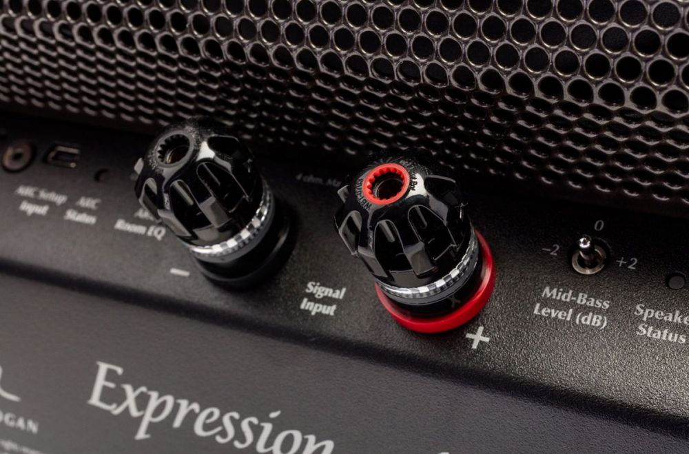 С усилителем колонки надежно и безопасно соединяются посредством акустических клемм WBT, допускающих 5 способов подключения. Их контактные площадки из сверхчистой меди обладают высокой проводимостью и свободны от т.н. вихревых токов. Клеммы изолированы, дабы предотвратить удар током, и надежно защищены от вибраций. Посадочные отверстия рассчитаны на подключение профессионального кабеля большого сечения.