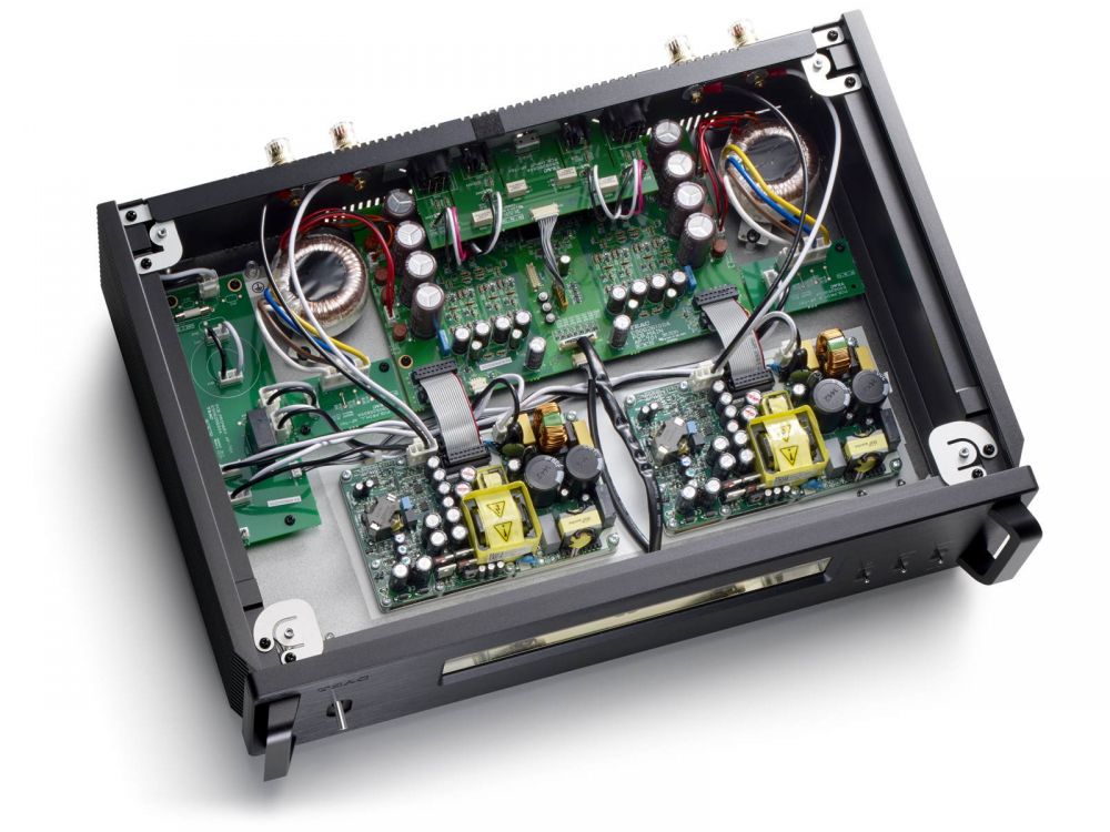 Это стерео усилитель мощности с балансной архитектурой типа «двойное моно», в основе которого два заказных усилительных модуля класса D Hypex Electronics Ncore. Внутри у него два мощных силовых трансформатора с тороидальными сердечниками – для левого и для правого каналов, буферные усилители на дискретных элементах и два модуля Ncore, что обеспечивает архитектуру типа «двойное моно» от входа до выхода. Входные цепи полностью балансные, так что вся динамика входных сигналов полностью передается на акустические системы. Все это обеспечивает превосходное разделение каналов, богатое воспроизведение, масштабную звуковую сцену и поистине трехмерное звучание.