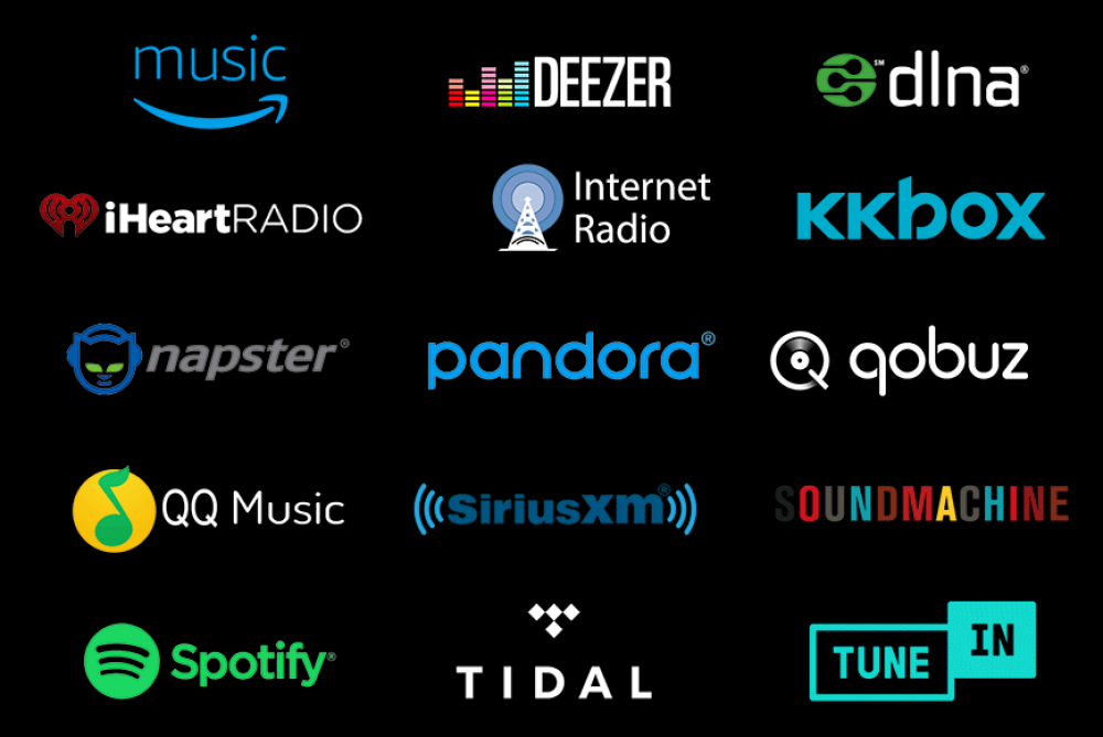 - Поддержка сервисов Spotify, Tidal, Amazon Music, Deezer, Qobuz, HDtracks, TuneIn, iHeartRadio и SiriusXM