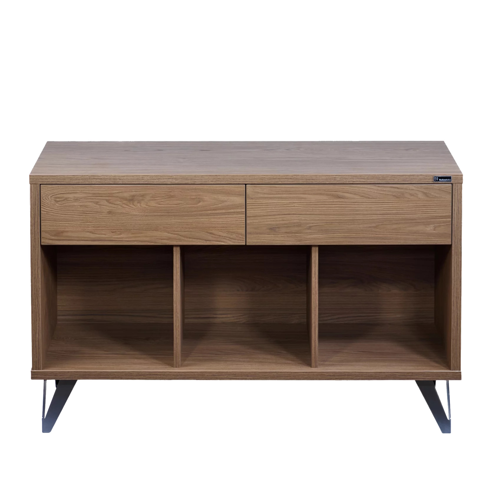 Тумба обладает значительной вместимостью, и при этом ее внутреннее пространство очень хорошо продумано. В нижней части Radiotehnika Rondo 302 находятся три одинаковых открытых секции кубической формы. Они предназначены для размещения виниловых пластинок, при этом диски в них будут располагаться вертикально – именно так, как необходимо, чтобы избежать их повреждений. Суммарного объема секций хватит для хранения довольно обширной коллекции.