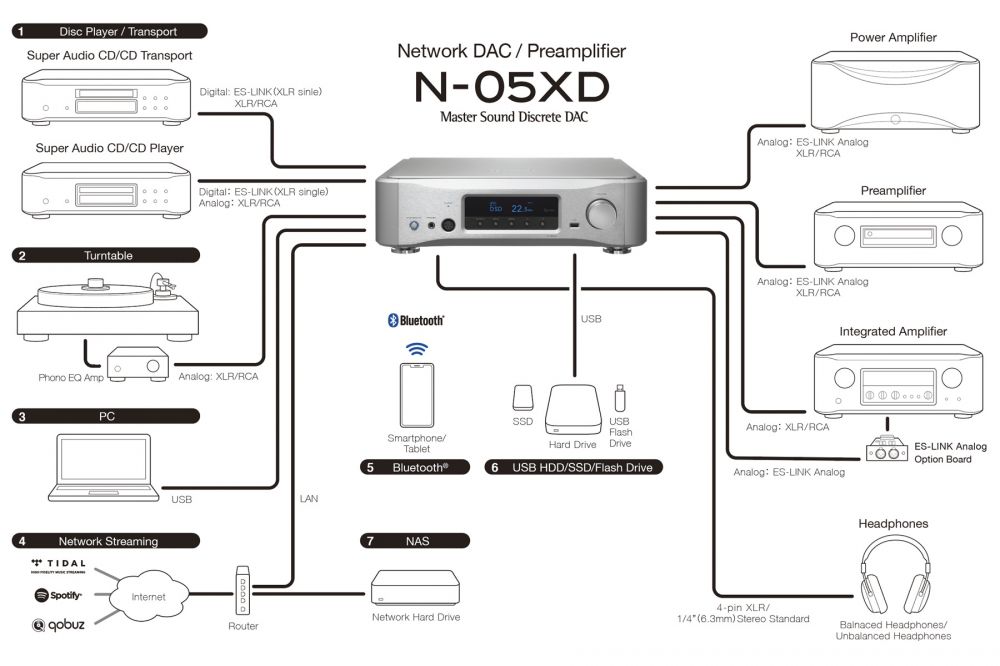 Схема сетевого модуля внутри N-05XD также разработана инженерами эксклюзивно для воспроизведения музыки. Отдельный линейный блок питания сетевого модуля (заимствованный у N-01XD) обеспечивает лучшее воспроизведение тонких деталей и выразительность музыки, поставляемой сетевыми источниками. N-05XD поддерживает большинство популярных стриминговых сервисов (Roon будет доступен после апгрейда ПО).
