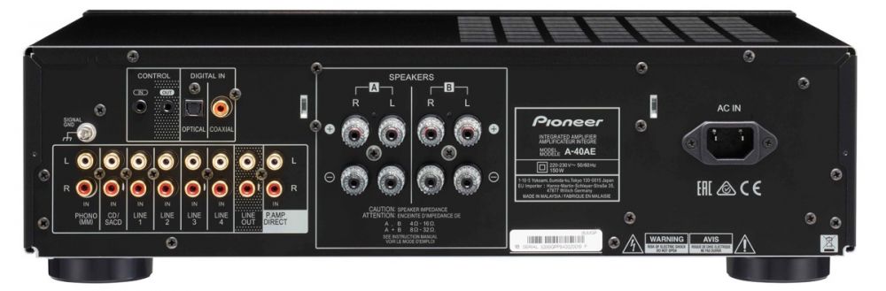 Pioneer A-40AE это классический интегральный стереоусилитель, и здесь нет беспроводных модулей и встроенных стримеров. Он предназначен для работы в составе традиционной стереосистемы. Во-вторых, при его разработке инженеры уделили максимум внимания важнейшим для качества звука аспектам и сделали все возможное в данной ценовой категории для того, чтобы аппарат отрабатывал каждую вложенную в него копейку.
