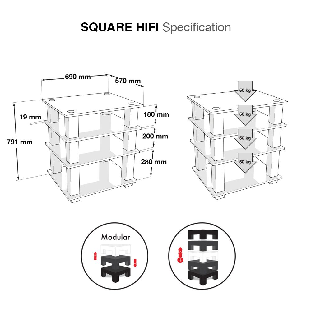 Стойка NorStone Square HiFi подходит как для аудиофилов hifi, так и для систем домашнего кинотеатра. 19 мм закалённые стеклянные полки с матовыми алюминиевыми колоннами придают Square HiFi изяшный и современный внешний вид, котороая очень легко интегрируется во все типы домашнего интерьера. Её квадратная архитектура с развязными шипами придаёт стойке непоколебимую стабильность. Все элементы независимы друг от друга и позволяют изменять мебель по своему усмотрению. Его высоко адаптируемая и прочная конструкция позволяет размещать впечатляющие устройства, такие как вертушки, усилитель для домашнего кинотеатра.