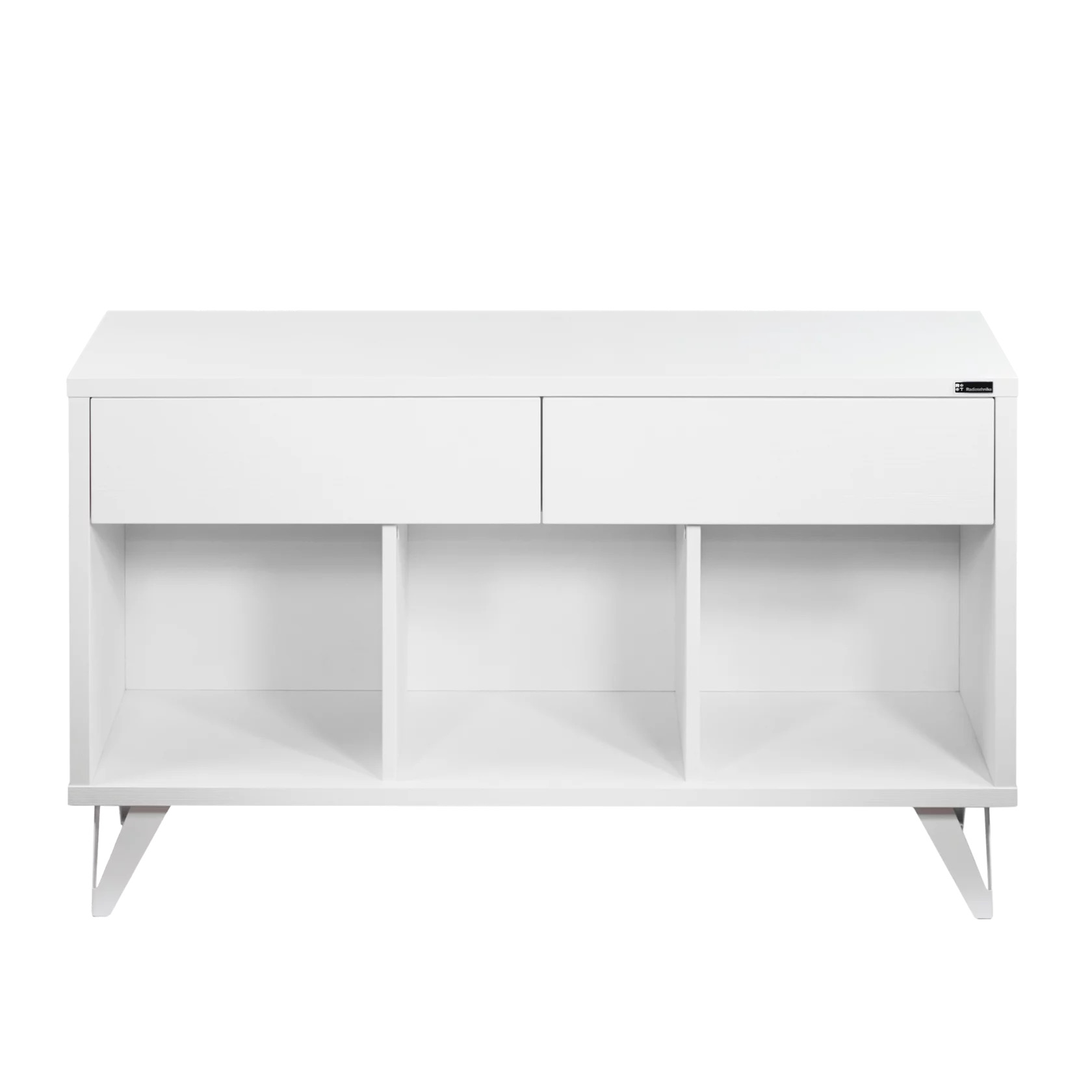 Тумба обладает значительной вместимостью, и при этом ее внутреннее пространство очень хорошо продумано. В нижней части Radiotehnika Rondo 302 находятся три одинаковых открытых секции кубической формы. Они предназначены для размещения виниловых пластинок, при этом диски в них будут располагаться вертикально – именно так, как необходимо, чтобы избежать их повреждений. Суммарного объема секций хватит для хранения довольно обширной коллекции.